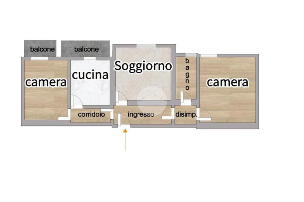 Entrando sarete accolti da un ingresso che vi condurrà nel soggiorno, proseguendo troverete sulla vostra destra una cucina abitabile, due camere da letto di comode dimensioni ed un bagno finestrato.